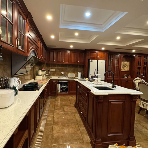 Özel yüksek kalite katı ahşap mutfak dolapları üretilen Kitchenette ada masa kalite Gabinetes De Cocina